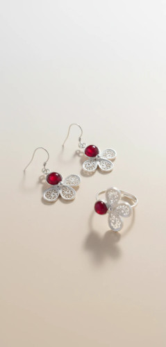 نیم ست نقره رز سرخ با سنگ لعل خرید مستقیم از تولیدکننده