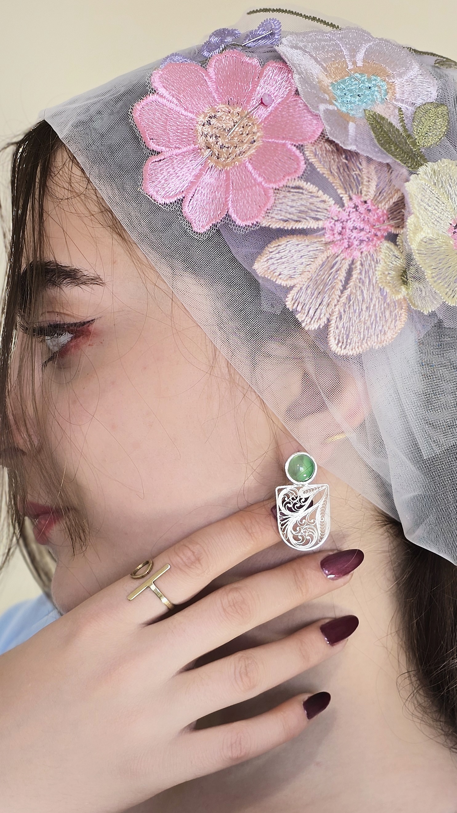 گوشواره نقره نیک بانو با الهام از داستان نیک بانو دختر یزد گرد سوم طراحی و ساخته شده این گوشواره با نقره 999 و سنگ سبز جید ساخته شده و قابلیت ساخت با انواع سنگ سفارش شما را دارد
