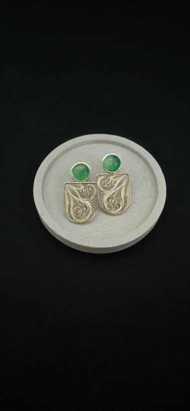 گوشواره نقره نیک بانو با سنگ عقیق سبز خرید مستقیم از تولیدکننده
