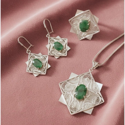 نیم ست نقره مربع خاص با سنگ زمرد سبز خرید مستقیم از تولیدکننده