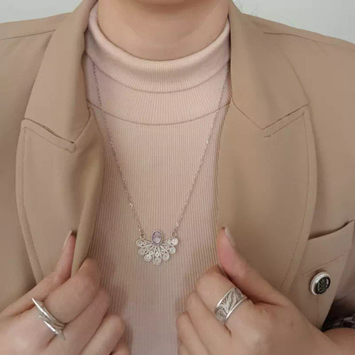 گردن آویز نقره طاووس با سنگ بنفش خرید مستقیم از تولیدکننده