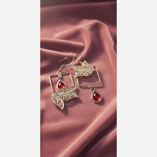 نیم ست مثلث نقره با سنگ عقیق قرمز خرید مستقیم از تولیدکننده